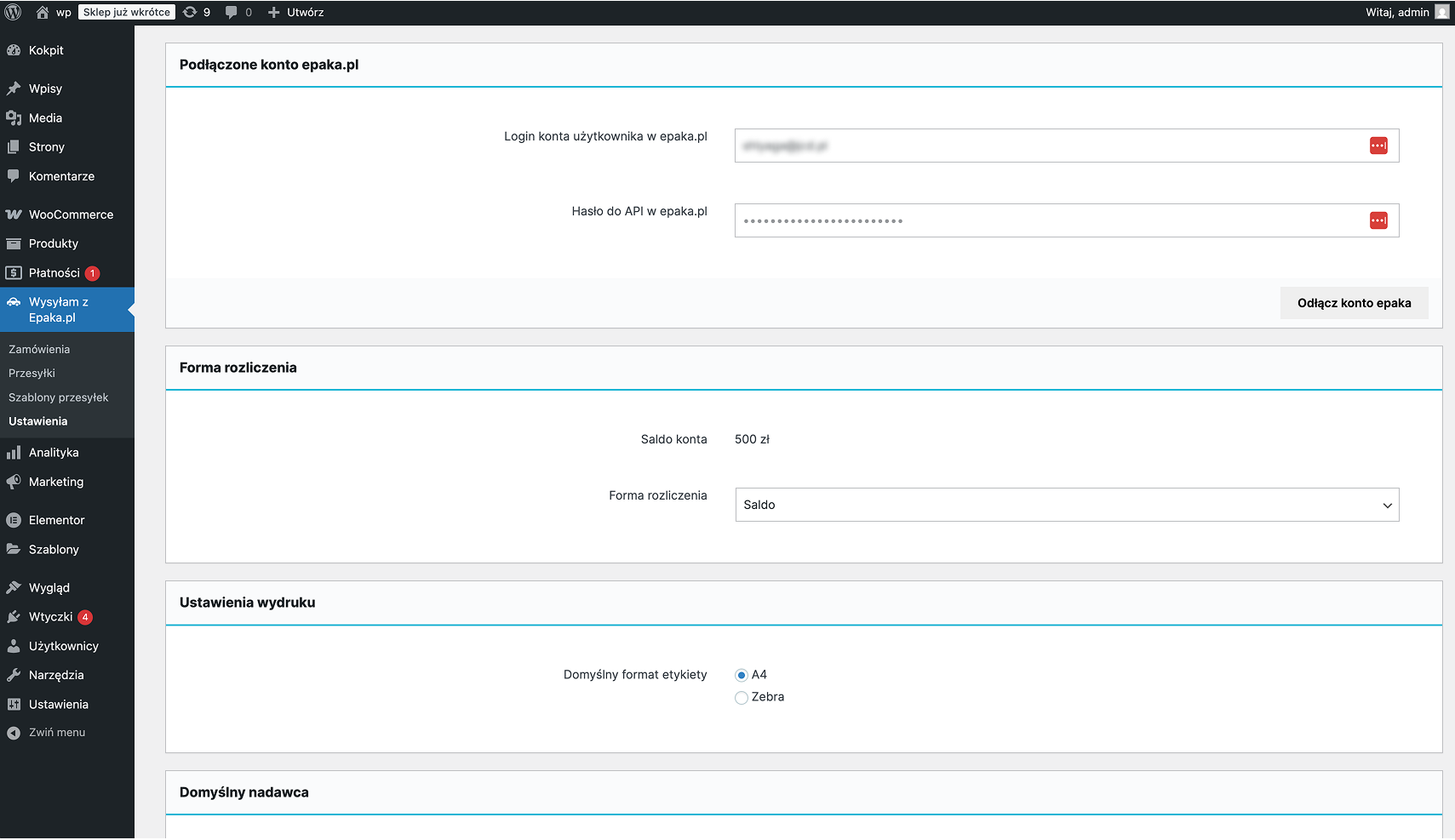 The «Epaka Shipping for WooCommerce» plugin allows you to integrate your WooCommerce store with the epaka.pl courier platform. With it, you can: