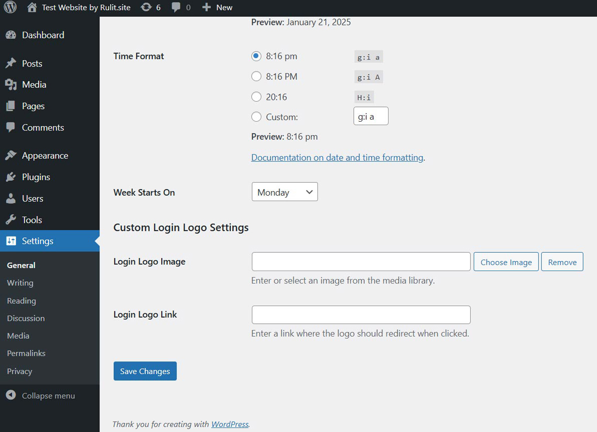 cill-admin.jsfor improved media uploader functionality - If no custom or theme logo is selected, the default WordPress logo is displayed