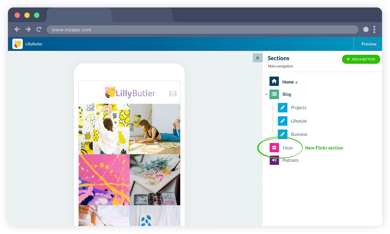 Ya no tienes que publicar tu contenido una y otra vez. Con la integración de Flickr, las imágenes publicadas en tu cuenta de Flickr se sincronizan con tu aplicación GoodBarber. Haz que tu contenido externo sea más accesible, mientras continúas tu actividad en estas plataformas. Mantén tu comunidad activa en Flickr, aumenta la visibilidad de tu cuenta y descubre todas las funciones disponibles activando esta integración.