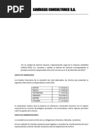 1. He euditado tos estados financieros adjuntos de la Sociedad COMPARIA DE ECONOMIA MITA