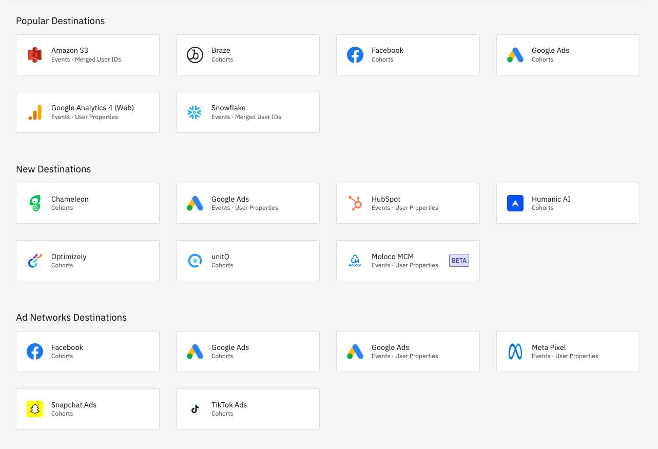 - Behavioral cohorts: Dig into your data with behavioral segmentation capabilities and engage with those segments using our many marketing integrations.