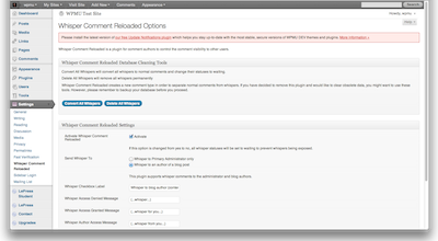 - Configure the plugin by navigating to Settings > Whisper Comment Reloaded