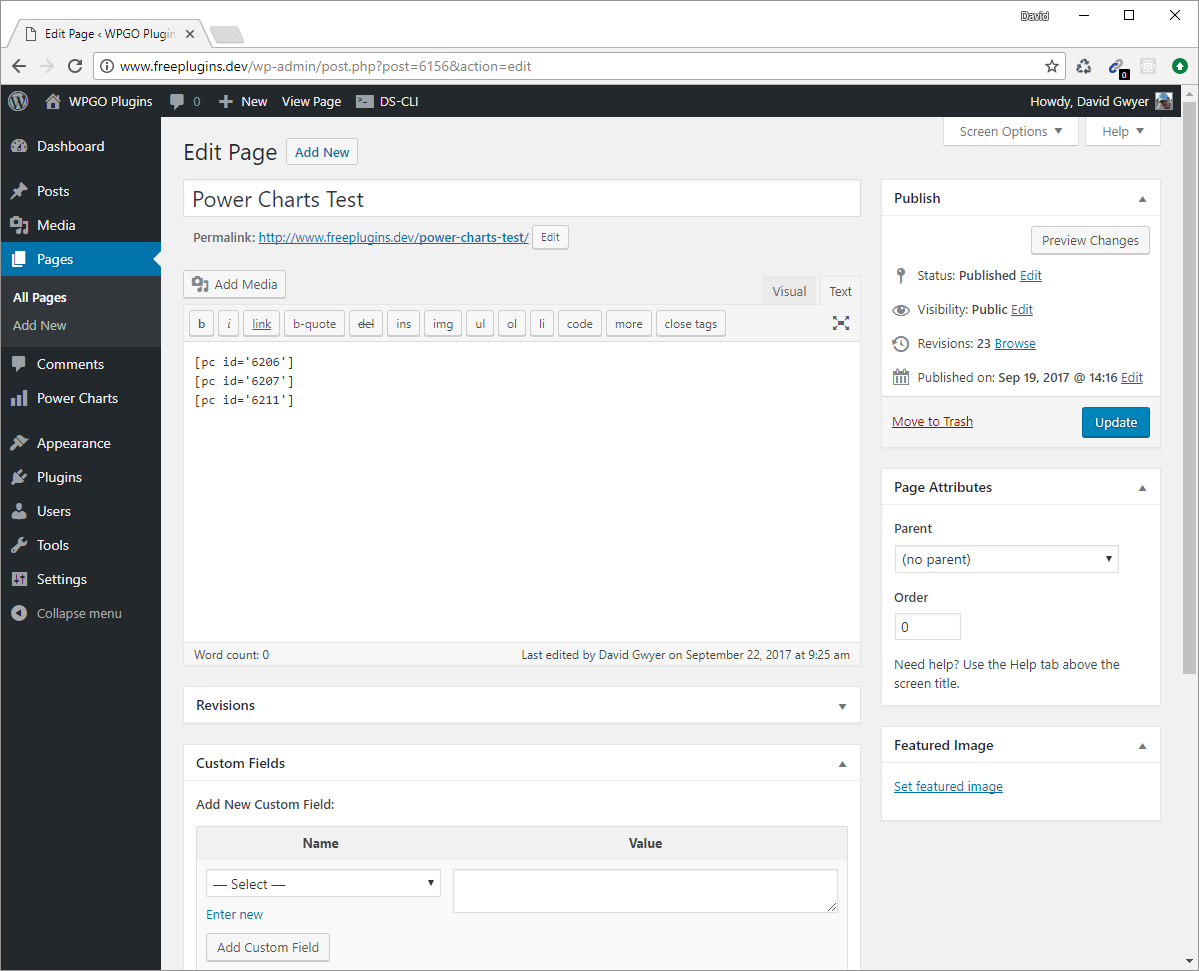 - Use the [pc id=»123″] shortcode in a page, post, or text widget to display a chart. Replace ‘123’ with the specific ID of the chart you want to display.