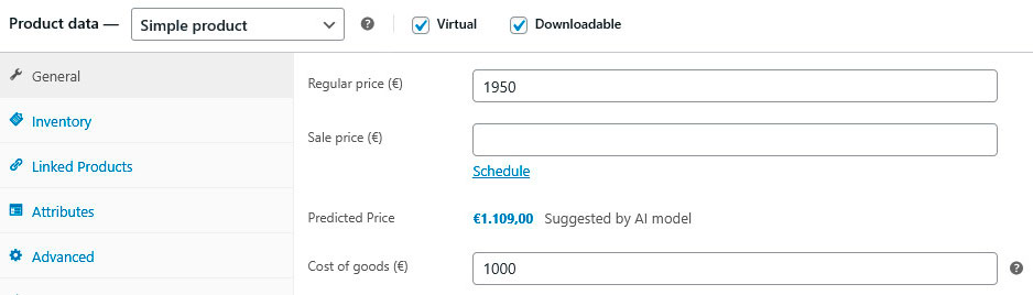 Price Suggestion in Product Edit: Get in-context price recommendations directly within the WooCommerce product editor.