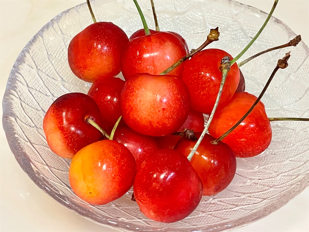 実がプリプリっと、適度にシャッキっと。甘さの中、優しい酸味があって、日本のさくらんぼはやっぱり美味しいですね。