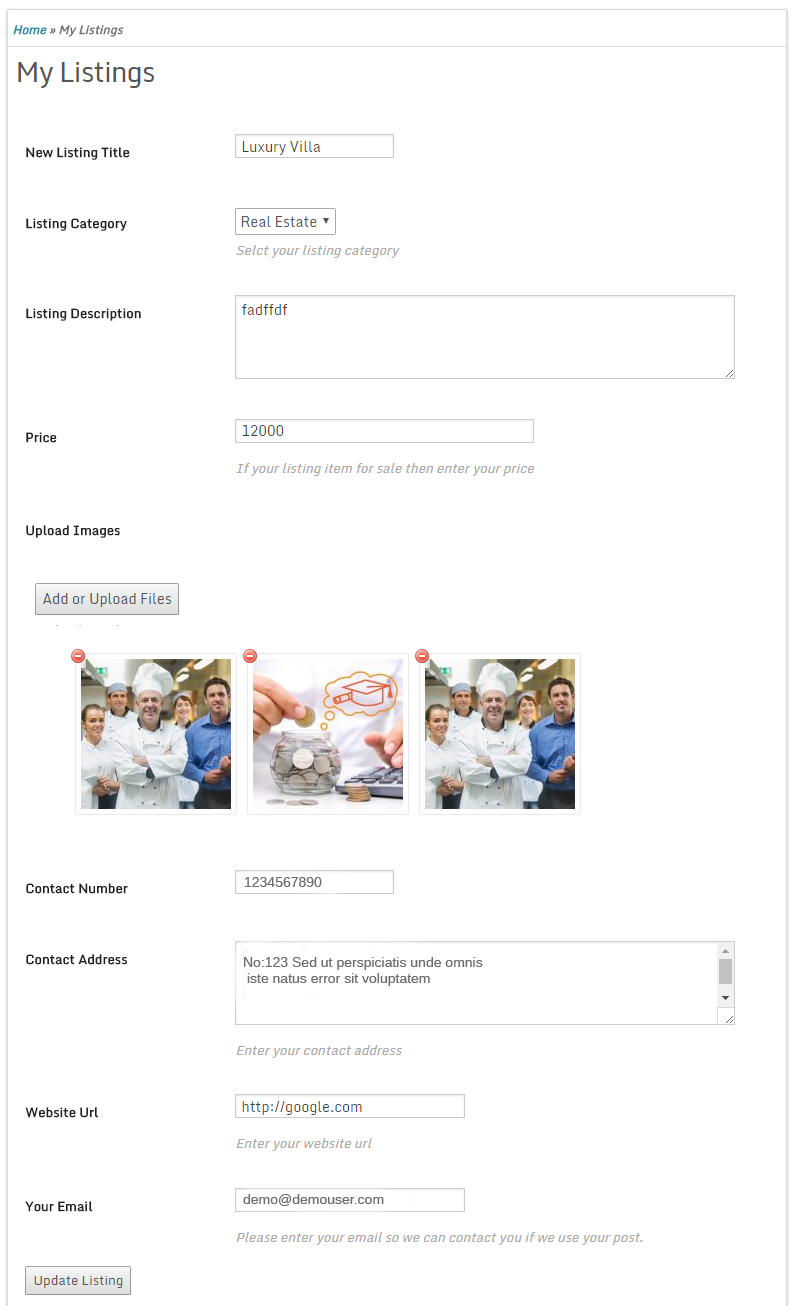 - Upload multiple images for listings