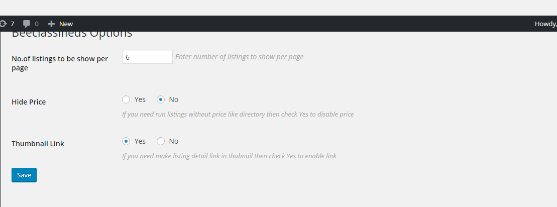 - Upload bee-classi.zip from plugins->Add New->Upload Plugins in wordpress admin OR upload via 2. ftp to** wp-content/plugins/** directory and extract it.