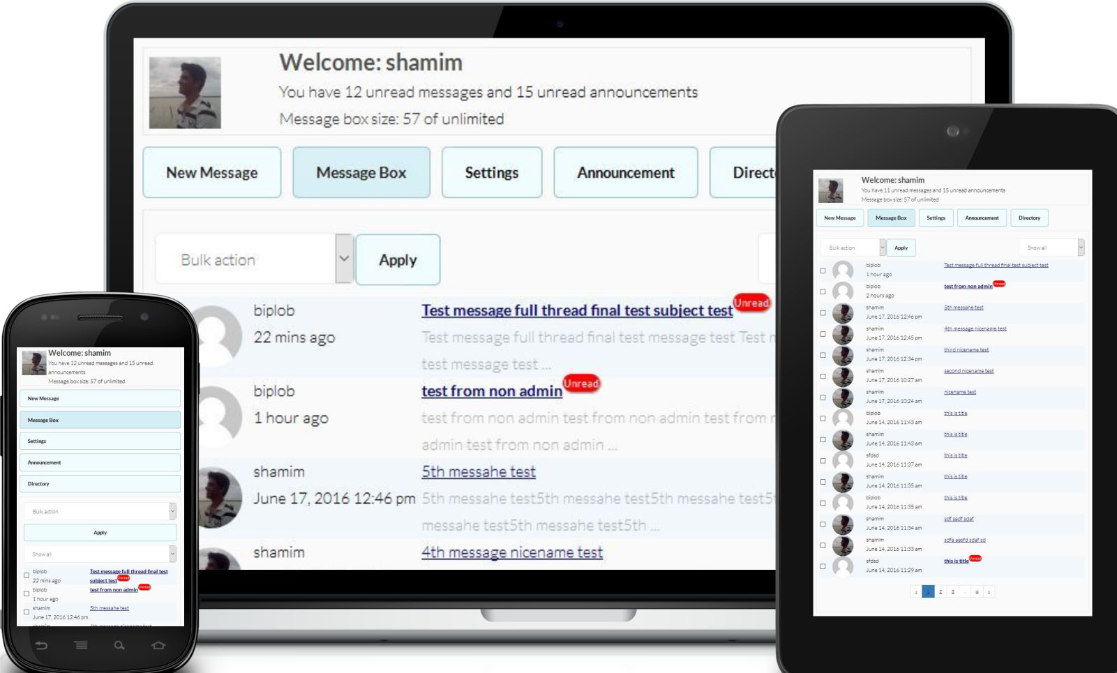 - Admins can set how many messages to show per page in the message box.
