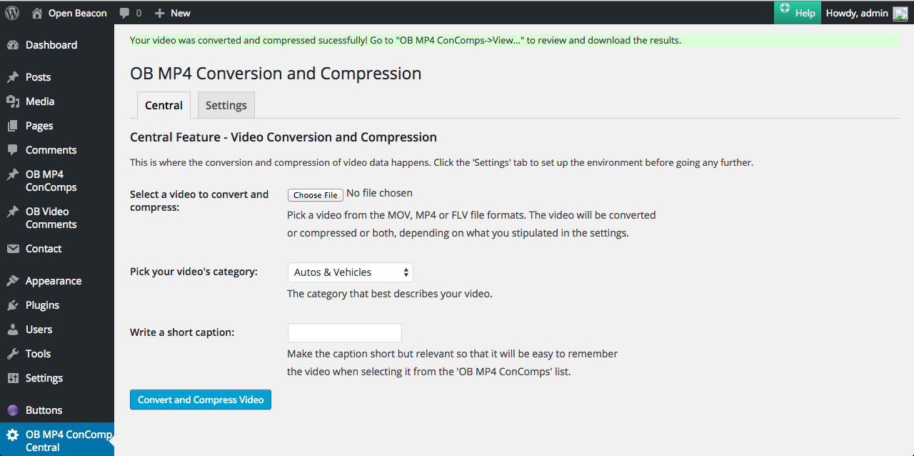 In short, Open Beacon MP4 Conversion and Compression is what any WordPress aficionado needs