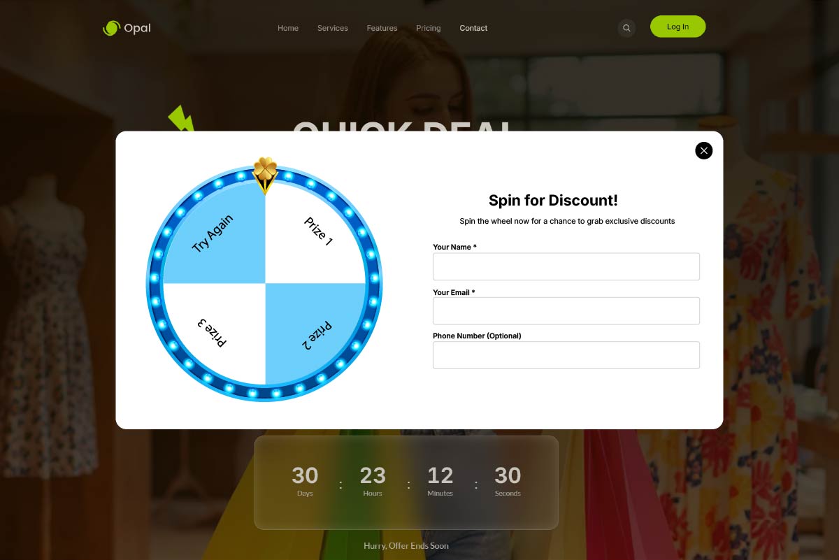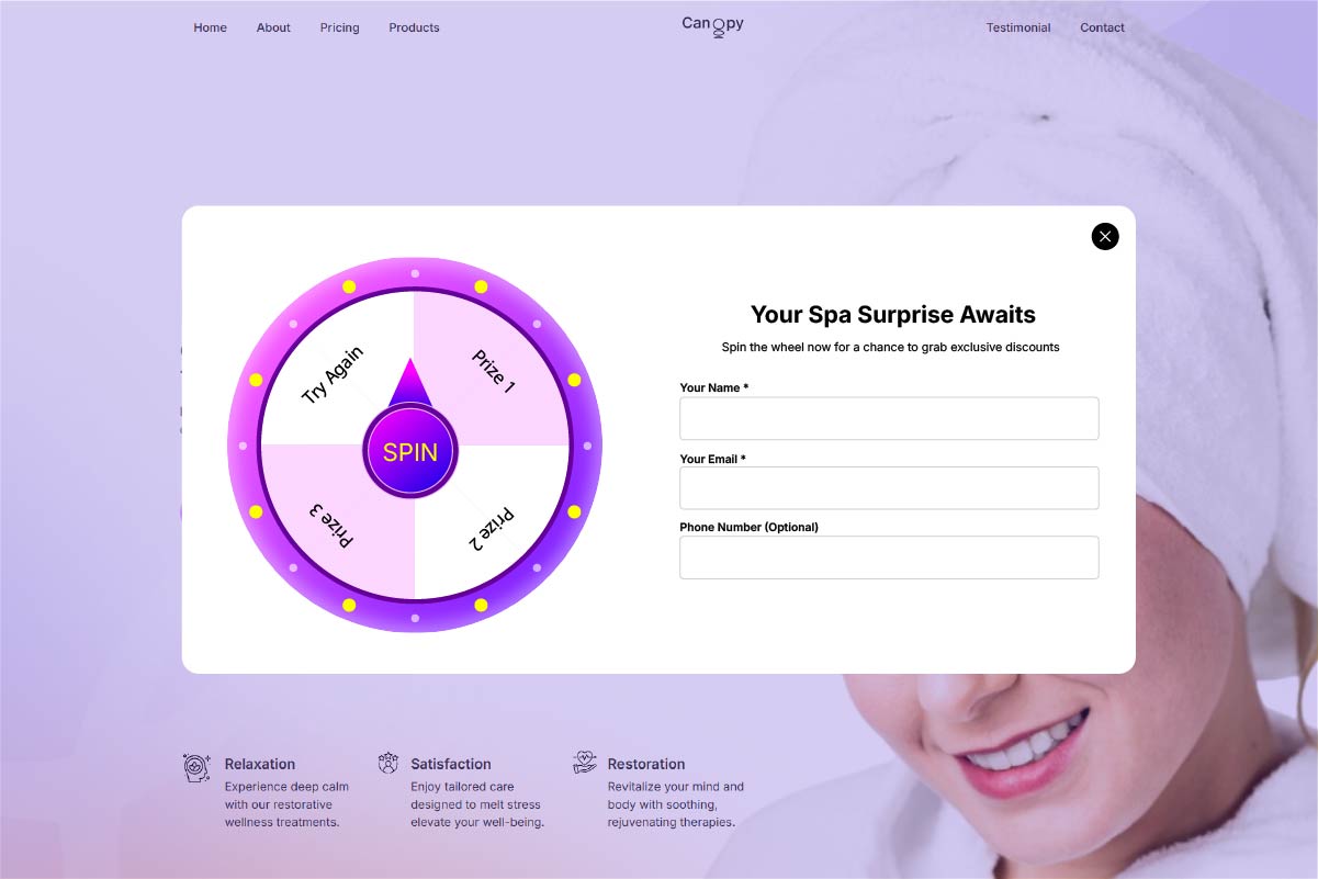 • Spin Wheel Interface – The interactive spinning wheel that engages visitors.