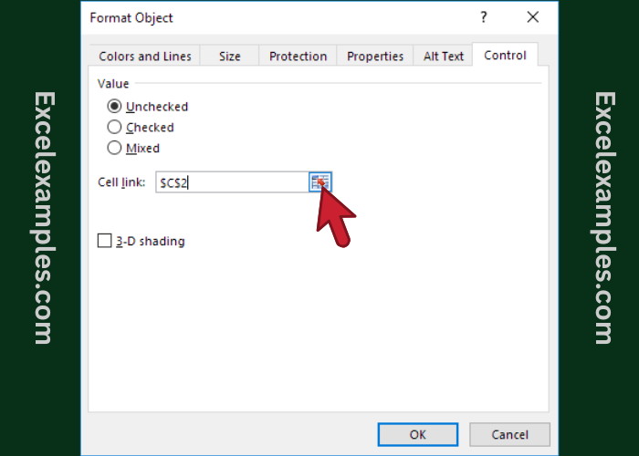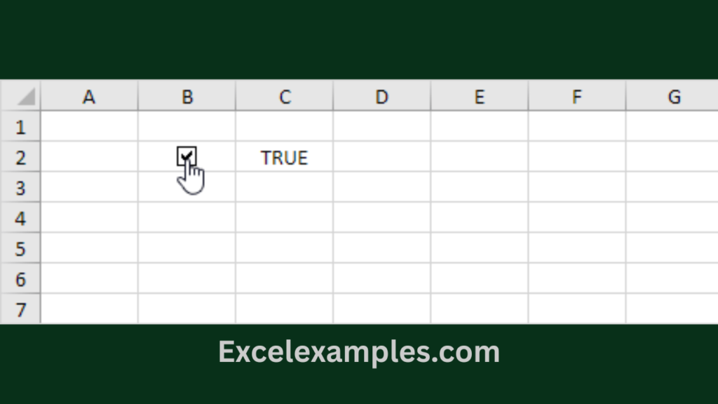 =IF(C2=TRUE,"Yes","No") - Check and uncheck the checkbox to see the result change.