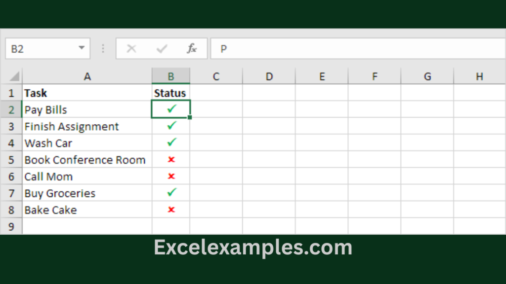 You can also insert a simple check mark symbol, but a checkbox is more powerful.