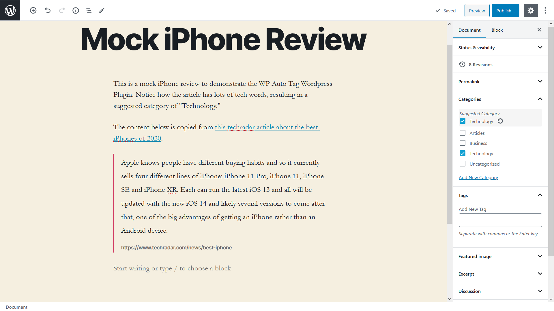 Automatic Tags uses machine learning to automatically categorize and tag your posts.