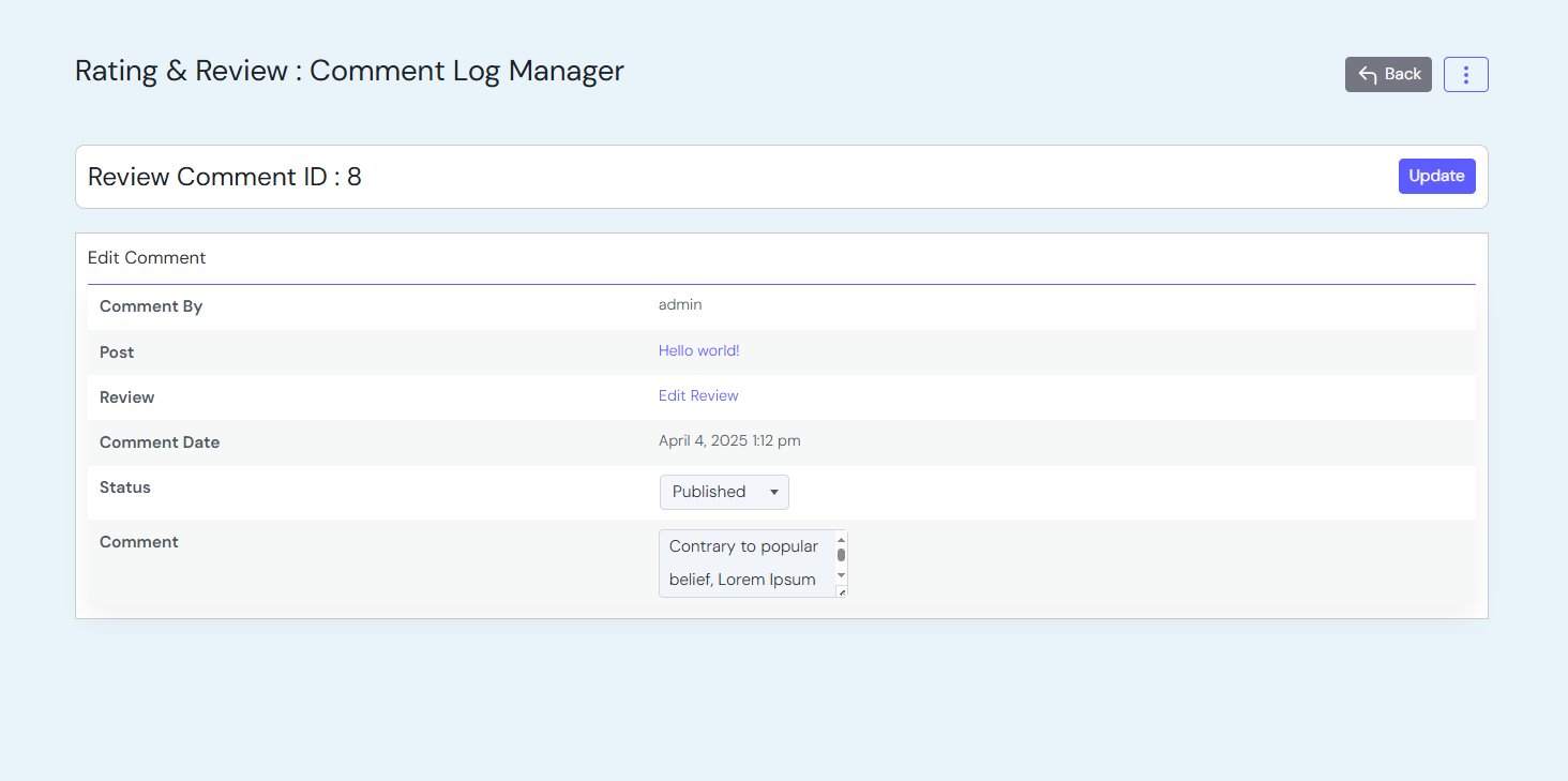 - View review details from admin panel