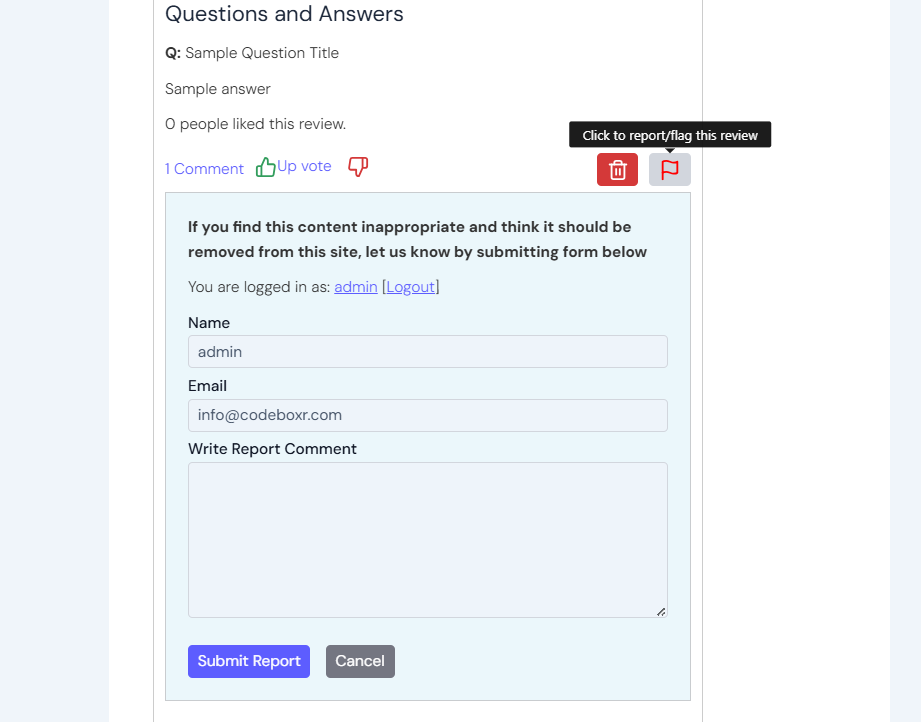 - Report(Spam) system – user can report any comment as spam or inappropriate