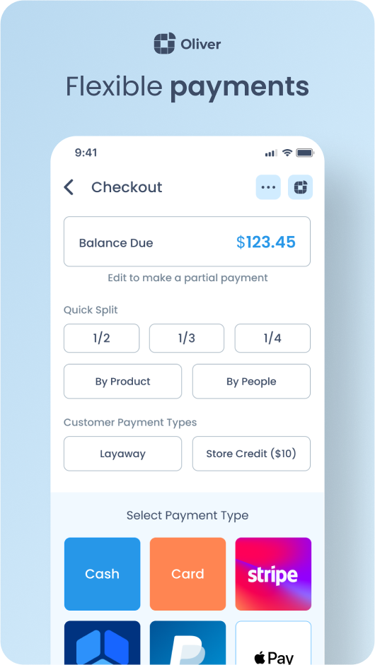 With Oliver POS you can process payments your way through debit, credit, cash, gift cards or store credit from your WooCommerce POS. You can split payments, use store credit and give refunds providing customers with the best possible experience.
