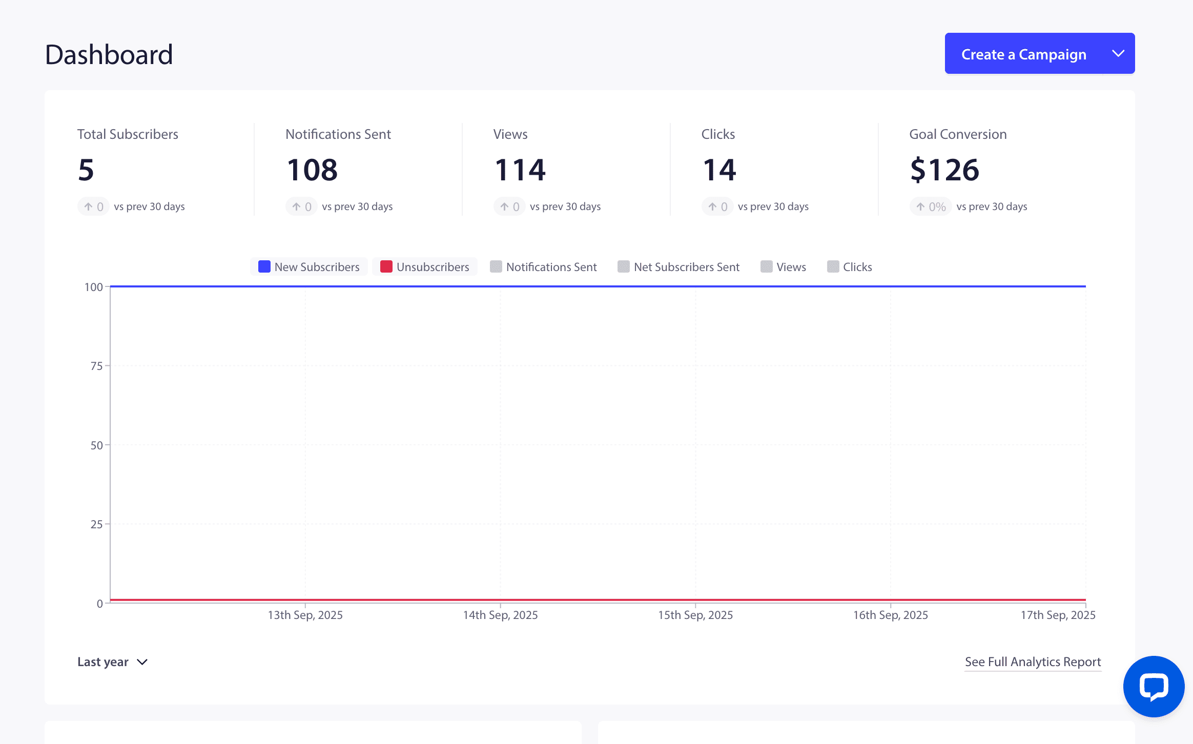 - Subscriber growth — track opt-in rates and subscriber trends over time