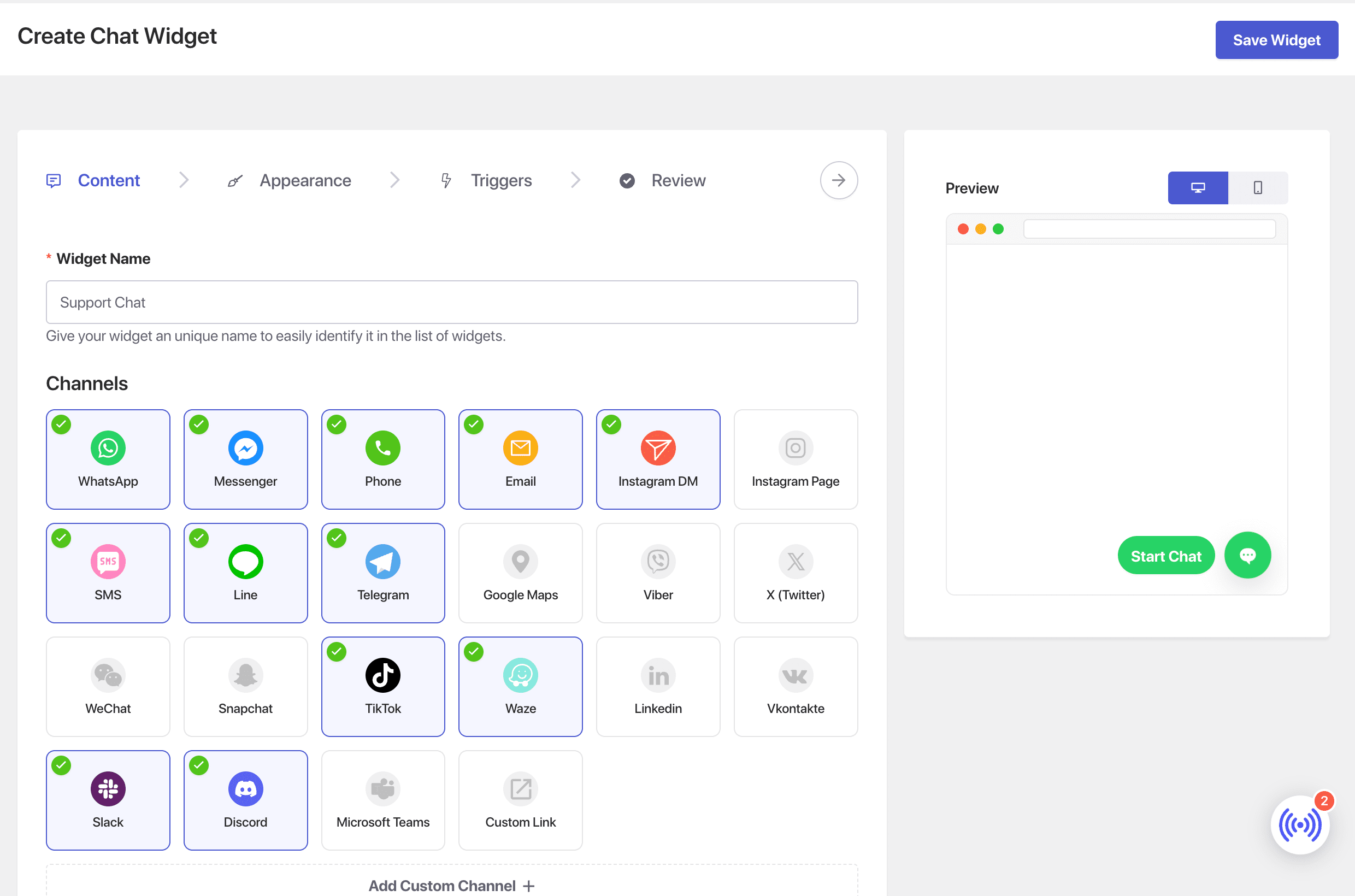 Multichannel Chat Widget