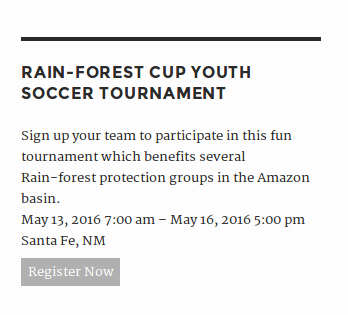 You might want to have different CiviEvent widgets on your site look different. Setting the “theme” in the widget settings or the shortcode doesn’t pick a different site theme, but it adds a class to your widget. Using one of the built-in theme options will provide a straightforward display, or you can create your own: just type something new as the widget theme and then add CSS in your site’s theme to handle it. The plugin was built from the perspective that while the widget should look reasonable out-of-the-box, most sites who care strongly about the widget’s appearance will already be implementing a lot of custom CSS. There’s no need for the widget to come with a lot of heavy-handed theming.