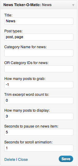 jQuery animated WordPress widget that displays the newest of news in a a silky smooth scrolling news ticker in the sidebar. Full documentation is available to delight and inform. Need help? Check out the excellent, free community support here on WordPress. Need a heaping’ helping’ of help? Premium support is available for at crazy low rates.