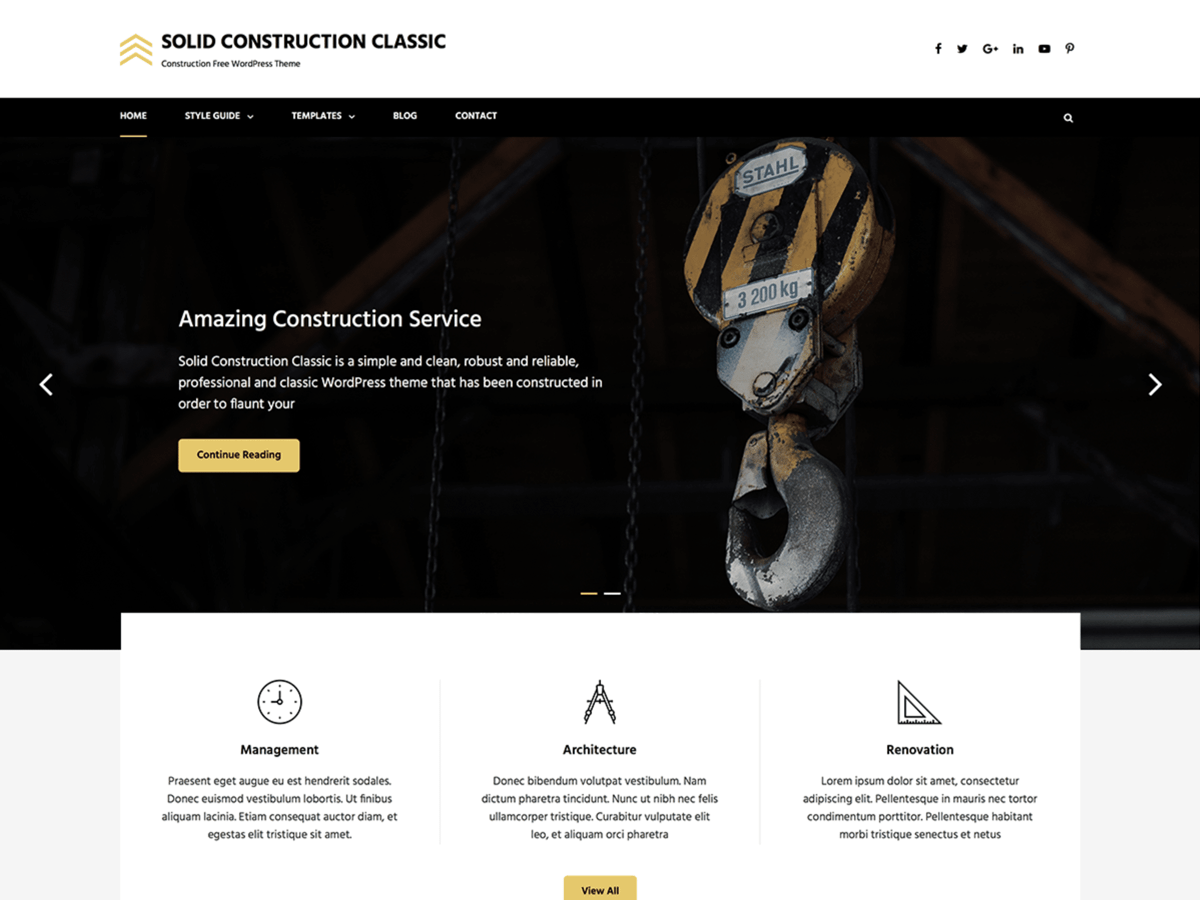 Solid Construction Classic is a child theme of our Construction WordPress theme – Solid Construction. Solid Construction Classic is a simple and clean, robust and reliable, professional and classic WordPress theme that has been constructed in order to flaunt your products and services online. As the name suggests, Solid Construction Classic makes your construction and architectural website bold and solid, giving your website a classic look on all devices regardless of the screen resolution. You can display your website logo, title, and tagline elegantly on the left side of your website. The classic design makes your construction website bold and beautiful. Solid Construction Classic empowers you with the ability todisplay your social icons on the right side of the website gracefully, making it easier for your visitors to find you on social media platforms. Solid Construction Classic helps you add all the crucial assets to your website that would help in the growth of loyal clients. With an array of amazing features integrated into the theme, Solid Construction Classic sure is a perfect fit for construction companies, architectural firms,building companies and freelance architects. The theme is easy-to-use, feature-rich and visually stunning. Showcase your construction and architectural business through your website in a revolutionary way and increase the number of visitors and clients you get every day. To top it all, the theme is translation ready. For more details, check out the Theme Instructions at https://catchthemes.com/themes/solid-construction-classic/#theme-instructions, support at https://catchthemes.com/support/ and Demo at https://catchthemes.com/demo/solid-construction/