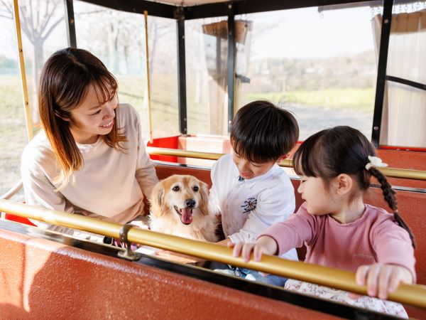 園内を走るハーベストトレインへのワンちゃん乗車と、最大の高さ36mの観覧車へのワンちゃんを連れての利用も可能!