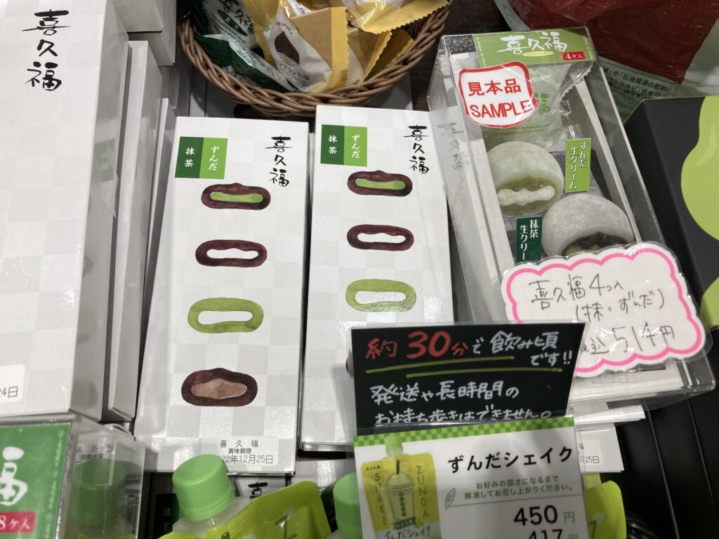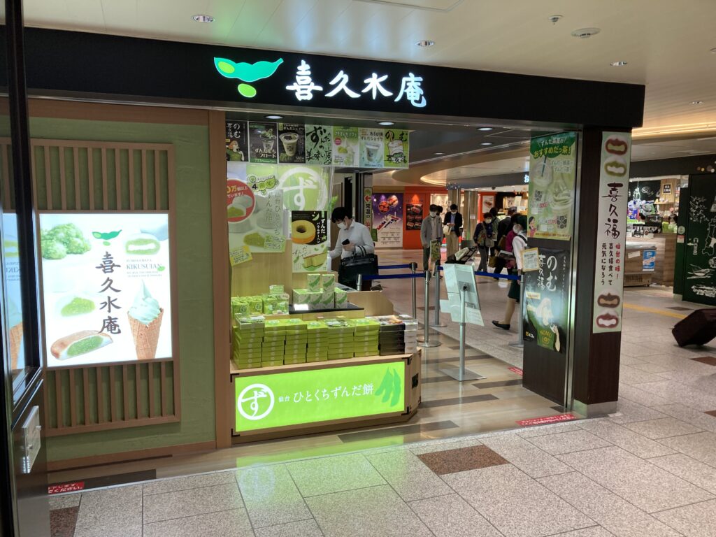 まずはJR仙台駅3Fにある喜久水庵ずんだ茶屋。ここは五条先生一押しの和菓子『喜久福』が売られているところですね。
