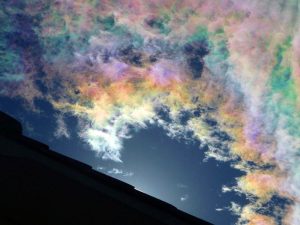 するとその家の屋根を突き破って(二人にはそう見えたそうです)、虹のような七色の火の玉が飛び出して、