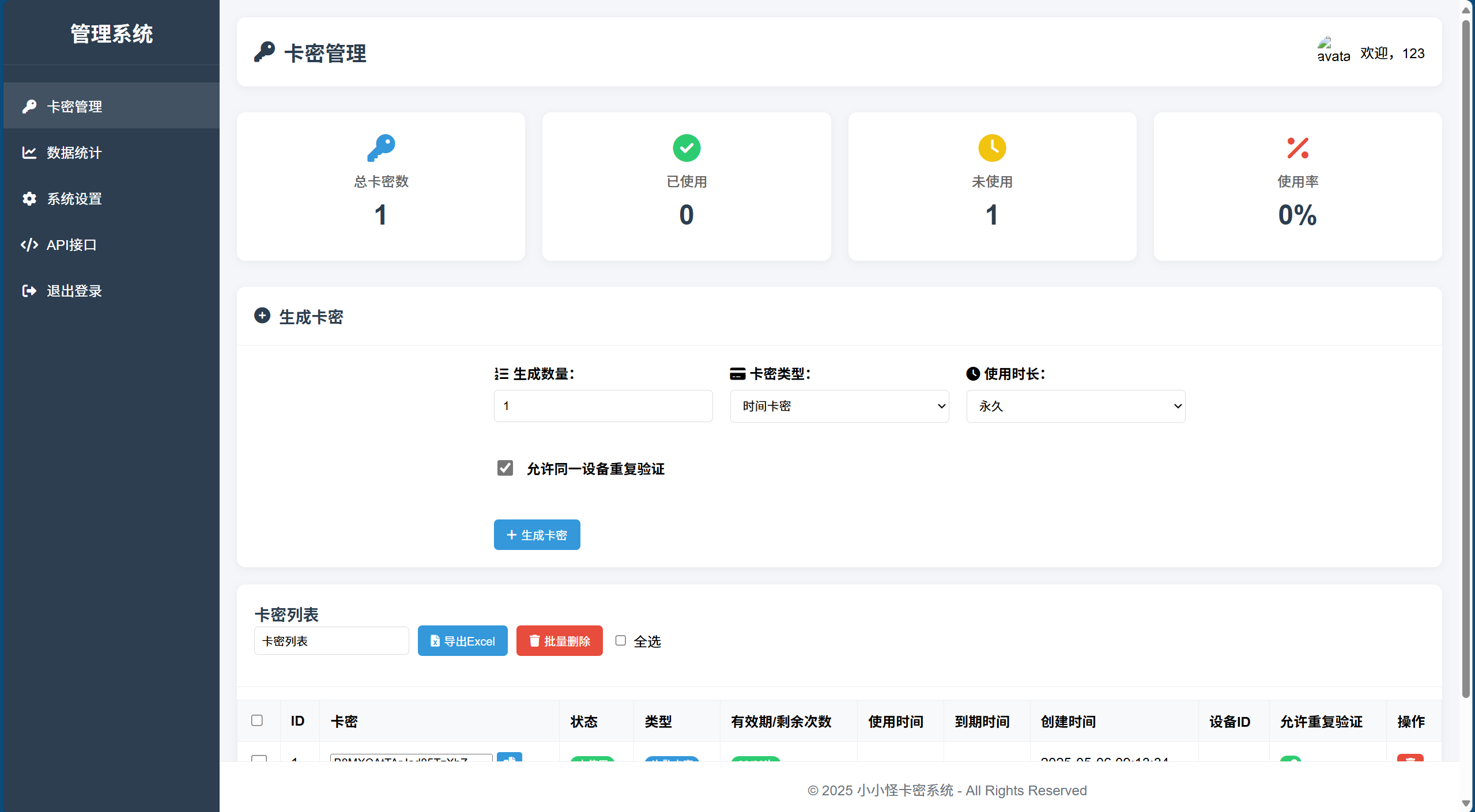 小小怪卡密系统_简单高效的PHP卡密验证系统,支持时间卡密和次数卡密