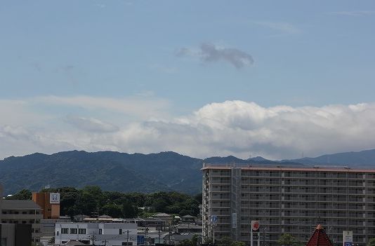 ベランダから眺めると、暫し青空も広がり夏雲のような白い雲がみられる。