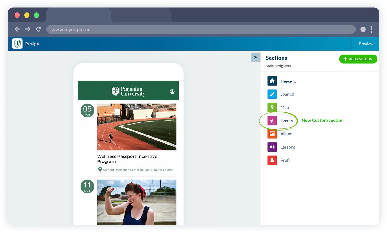 GoodBarberin Custom Events -integraation avulla voit yhdistää minkä tahansa tapahtuman sovellukseesi. Tämän laajennuksen avulla voit näyttää kaikki ulkoisille alustoille ladatut tapahtumasi ja jakaa sen sisältöä automaattisesti integroimalla oman mukautetun syötteesi. GoodBarber tarjoaa monia liittimiä ulkoisen sisällön jakamiseen, mutta Custom Events -integraatio tekee alustastamme yhteensopivan kaikkien olemassa olevien palveluiden kanssa, vaikka se vaatiikin sinulta hieman vaivannäköä. Jos etsimäsi liitin ei nimittäin kuulu ratkaisuihimme, sinun on luoda oma mukautettu syötteesi integroida se sovellukseesi. Näin tapahtumasi saavat enemmän näkyvyyttä ja voit tarjota lisäsisältöä sovelluksesi käyttäjille.