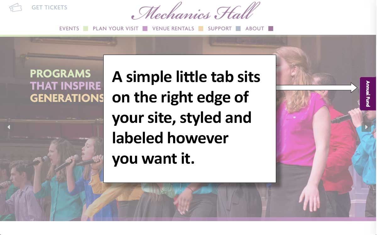 ExtraSpace adds a clean, minimal tab to the edge of your website. When clicked, it reveals a smooth slide-in panel that can contain: