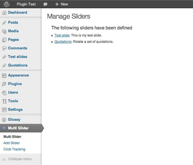 Unzip Multi Slider into your plugins folder (be sure all files are in plugins/multi_slider) and activate through the dashboard. You will see a new Multi Slider menu show up in the dashboard. Add a new slider and enjoy!