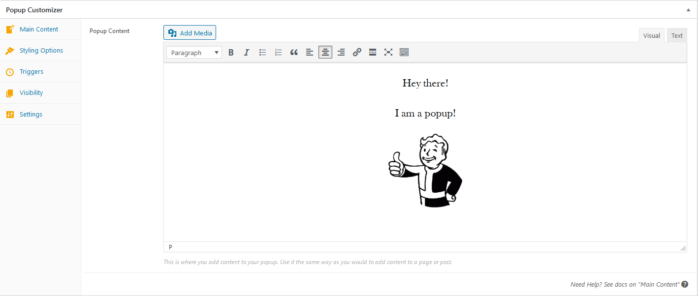- Display almost anything on the popup, using the same editor you use to create posts and pages