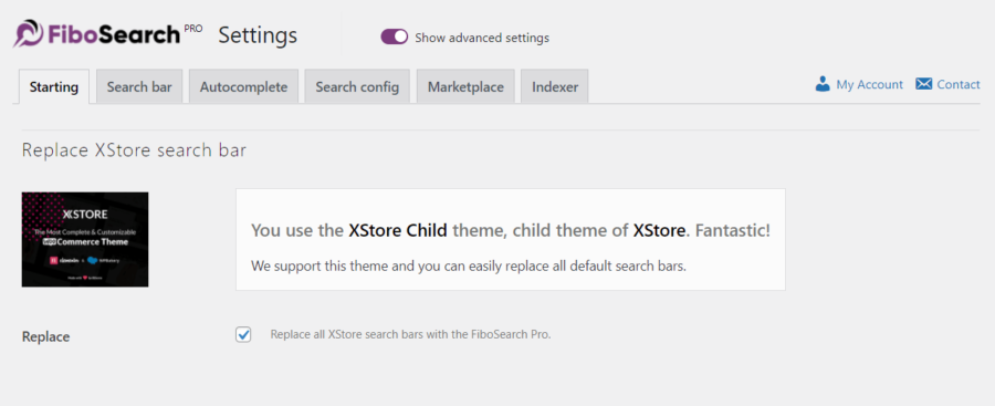 Select the option Replace all XStore search bars with FiboSearch and the search bar should be replaced.