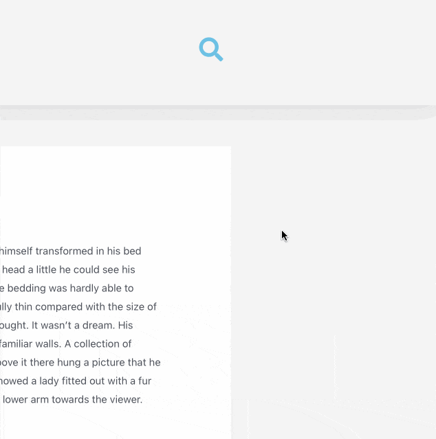 - The pop-up will overlay the whole right part of the screen to the width of the search bar (730px), with a clean and minimalistic white background