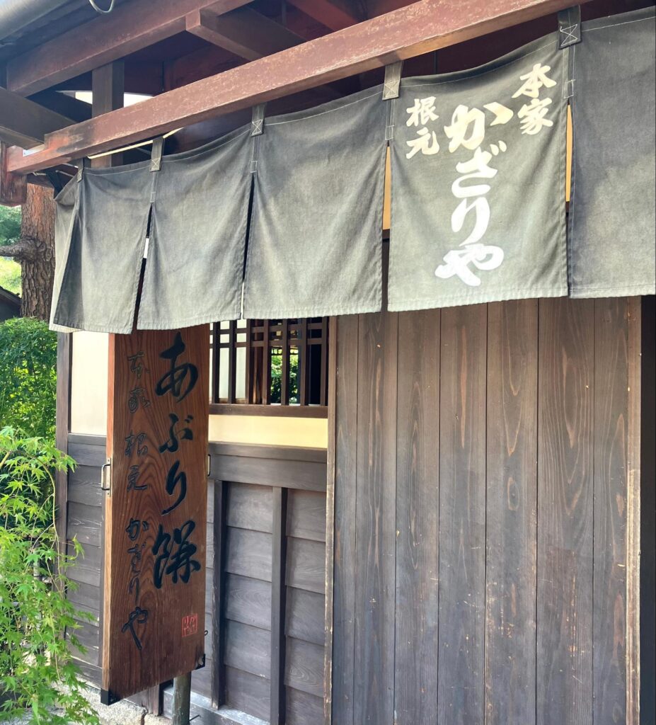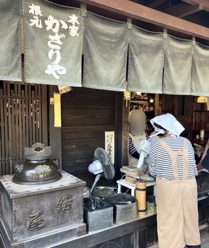 あぶり餅のお店は、「かざりや」さんと「一文字屋和輔」さんが向かい合っています。