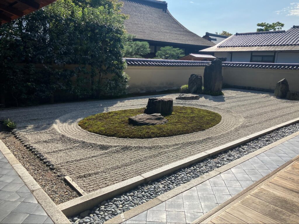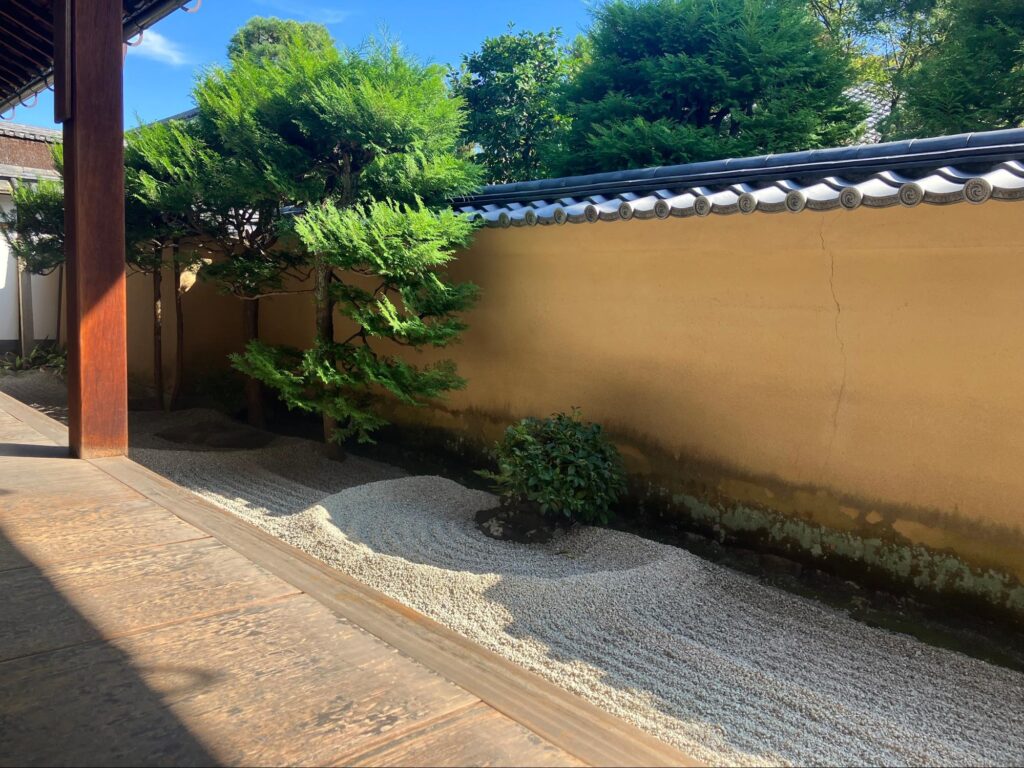 目の前には枯山水、そして木々の音とちょっとお寺から香ってくるお線香のような香り。