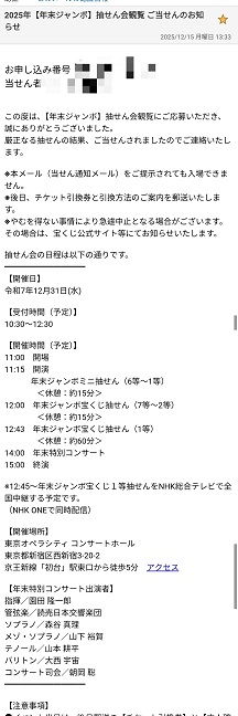 年末に、宝くじ抽選会&コンサートチケット当選・マクドナルドの福袋当選・