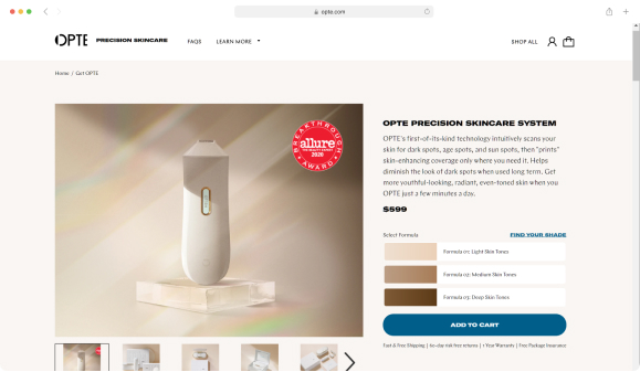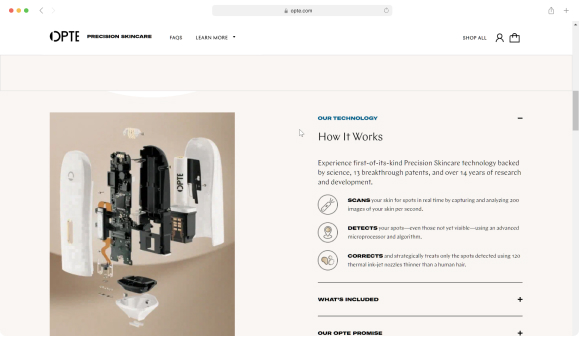As a leader in advanced skincare technology, Opte had a revolutionary product backed by 13 patents and 14+ years of research and development. Their handheld device analyzes a customer’s face and applies a solution to combat hyperpigmentation, tailored to their unique face. It is an awesome product (that works!), with a lot of science and technology behind it, which was part of the problem they were having.