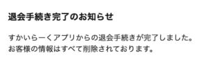 アプリの退会が完了すると、退会手続き完了のメールが届くので確認しておきましょう!
