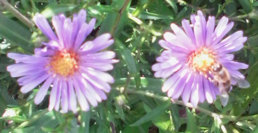 The big clump of crocosmia, or montbretia if you prefer, down at the south-eastern corner of the plot, is flowering really well this year. It’s certainly eye-catching with its bright green swordlike leaves and fiery red flowers.