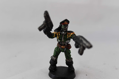 yellow, but I decided that this was only because they couldn’t do it in gold (that’s my excuse and I’m sticking to it!). So a base of bronze was painted on, and this was then highlighted with shinning gold. The area around his eyes was then painted orange, and I ran a little dry-brush of the same down his “snout” too. His pants I undercoated with some dark sand, and dry-brushed with some light sand (see I kept these yellow at least!) and his belt I painted chocolate brown with leather highlights.