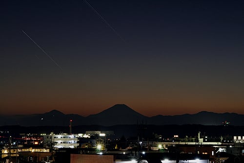 200mm望遠レンズで富士山のシルエットを撮影した後、