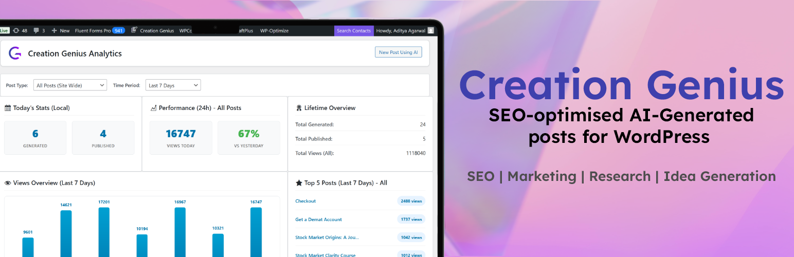 Creation Genius is a native WordPress content engine designed to streamline your editorial workflow. Unlike generic AI wrappers, it integrates directly with your site’s data to research, write, format, and optimize content that aligns with your brand identity.