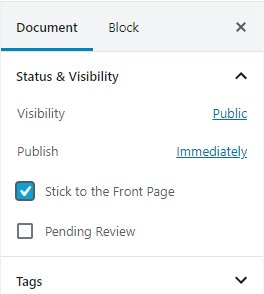 - Sélectionnez Mettre cet article en avant sur la page d’accueil.