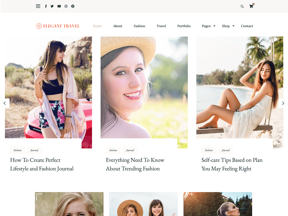Elegant Travel is a multipurpose, easy to use and mobile-friendly travel blog theme. It is optimized to load fast and SEO optimized to help you rank better on search engines. With Elegant Travel, you can create website for any blogging niche, such as travel, lifestyle, fashion, food, fitness, journal, health, parenting, makeup, and several other types. In this theme, you can choose from unlimited colors and 1000+ Google fonts to change your website look and feel with a single click. With the Instagram section, you can flaunt your latest posts to increase your followers. The strategically placed newsletter helps you to generate more leads and grow your subscribers. This theme is also WooCommerce compatible so you can start an online shop. Elegant Travel is translation-ready, schema-friendly and RTL compatible. Check demo at https://blossomthemes.com/theme-demo/?theme=elegant-travel, read the documentation at https://docs.blossomthemes.com/elegant-travel/, and get support at https://blossomthemes.com/support-ticket/.