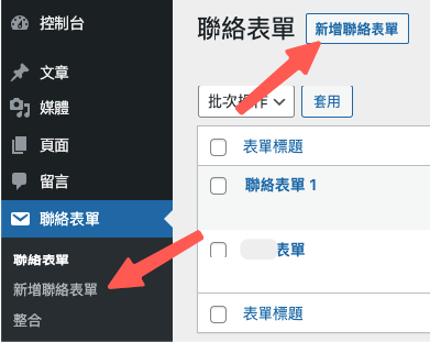 啟用後,從左側邊欄,找到「 聯絡表單 」> 選擇「 新增聯絡表單 」。
