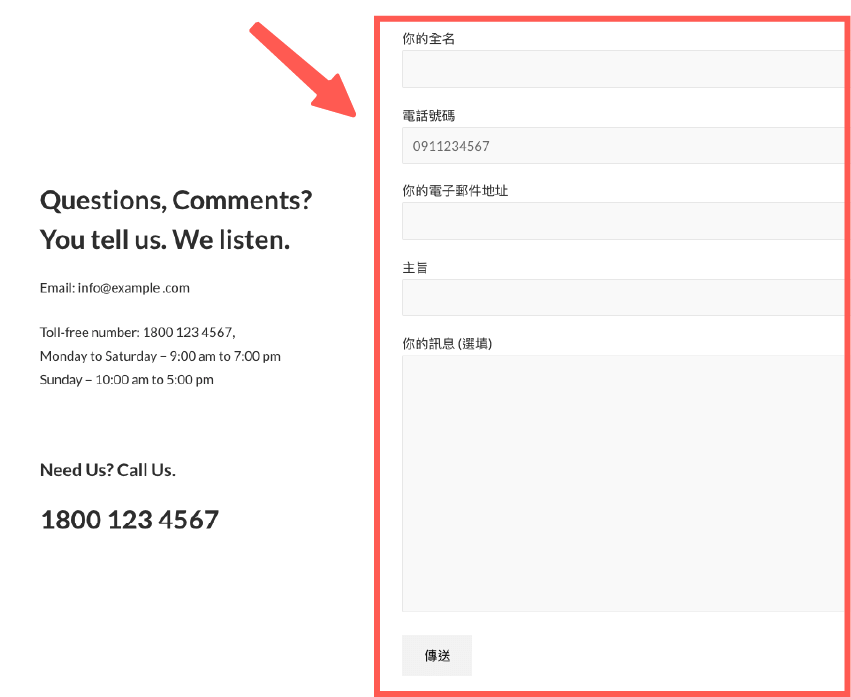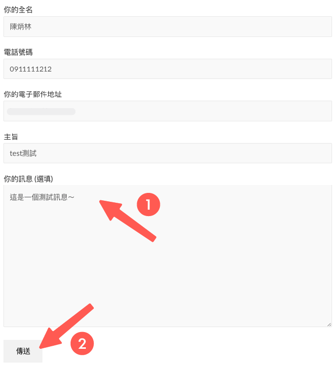 那我們來實際填寫,測試聯絡表單能否順利運作吧:)