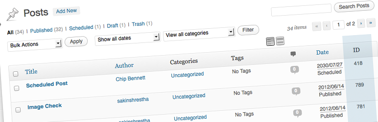 Catch IDs is a simple and light weight plugin to show the Post ID, Page ID, Media ID, Links ID, Category ID, Tag ID and User ID in the Admin Section Table. This plugin was initially develop to support our themes features slider. Then we thought that this will be helpful to all the WordPress Admin Users. Just activate and catch IDs in your page, post, category, tag and media pages.